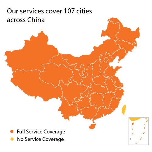 With service capabilities across 107 major cities, we are strategically placed to enforce your trademark rights across Mainland China. Our country-wide capabilities and regional familiarity empower us to protect your brand where you need it most.